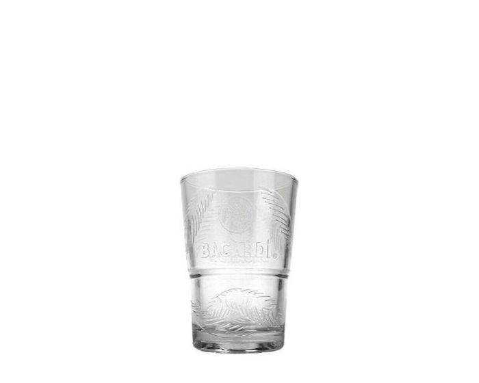 Dit Bacardi glas is gemaakt van wit glas en heeft een hoogte van 10 cm. Het glas is versierd met palmbladeren die in het glas zijn afgebeeld, wat een tropische en stijlvolle uitstraling geeft. Het is een ideaal glas voor het serveren van Bacardi rum en andere cocktails, en voegt een vleugje elegantie toe aan elke gelegenheid.