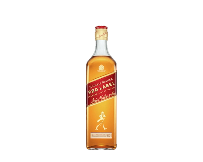 Johnnie Walker Red Label is een blend van ongeveer 35 Schotse whisky's, afkomstig uit verschillende regio's van Schotland. Deze whisky werd voor het eerst uitgebracht in 1906 onder de naam 'Walker's Special Old Highland' en werd in 1909 hernoemd naar 'Red Label'. Het is een whisky zonder leeftijdsaanduiding, wat betekent dat de exacte leeftijd van de whisky's in de blend onbekend is. Red Label staat bekend om zijn robuuste en krachtige smaakprofiel, wat het een populaire keuze maakt voor het mixen in cocktails. Het alcoholpercentage bedraagt 40%.