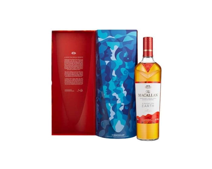 Macallan A Night on Earth in Scotland is een gelimiteerde editie single malt whisky die het Schotse Nieuwjaar, bekend als Hogmanay, viert. Deze whisky is gemaakt van een selectie van Amerikaanse en Europese eikenhouten sherryvaten, samen met Amerikaanse ex-bourbonvaten, wat het een rijke, zoete karakter geeft dat doet denken aan shortbread. De verpakking is ontworpen door Erica Dorn en bevat speelse abstracte illustraties geïnspireerd op Hogmanay-tradities.
