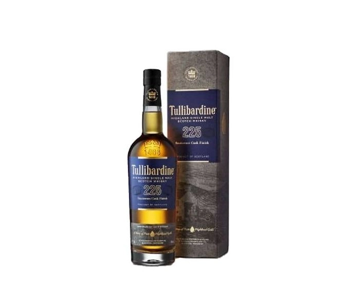 De Tullibardine 225 Sauternes Cask Finish is een Schotse single malt whisky afkomstig uit de Highlands. Deze whisky heeft gerijpt in first-fill ex-bourbonvaten en is daarna gefinisht in 225 liter Sauternes wijnvaten van Château Suduiraut. Dit geeft de whisky een unieke, rijke smaak met een subtiele zoetheid en complexiteit. De naam "225" verwijst naar de inhoud van de Sauternes vaten waarin de whisky zijn laatste rijping heeft ondergaan. De distilleerderij Tullibardine, gelegen in Blackford, heeft een lange geschiedenis die teruggaat tot 1947, toen het werd omgebouwd van een brouwerij naar een distilleerderij.
